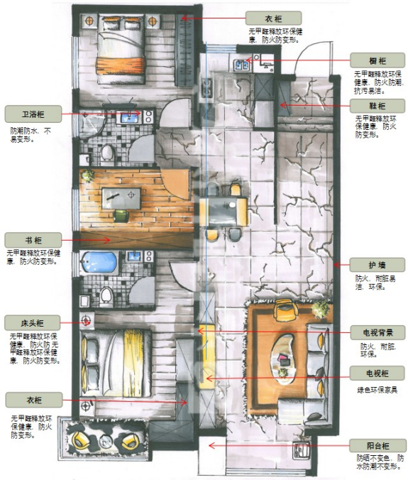 1、室内使用部位:木饰面硬包衬板、软包衬板、窗帘盒、灯槽和其它饰面材料的基层(金属板、石材、布艺、玻璃、防火板等)。