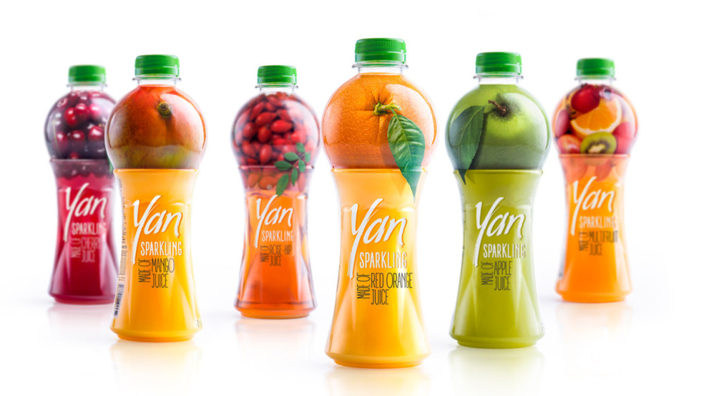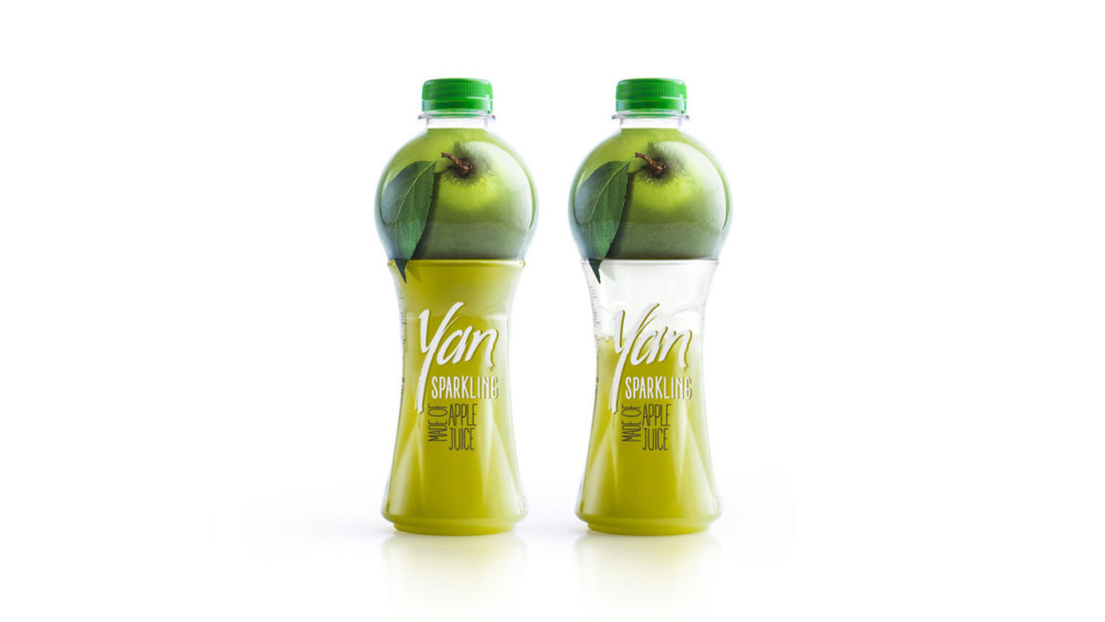 这是一组来自国外的饮料产品,产品名从Siya更改为Yan Sparkling,Yan Sparkling 果汁品牌一直坚持打造天然水果饮料的主题,在这次的果汁饮料包装设计中也正是需要体现这一点。最终为它提供了一个直接明了的创意包装解决方案:天然水果就在您的玻璃杯上。你在 Yan Sparkling 瓶上看到了什么?确切地!它是果汁杯中的水果。通过透明标签将真正的水果放在玻璃杯上,变成一个完整的瓶子,这个想法通过富有表现力的设计完成,标签设计也是呈现出了果汁的自然和新鲜。
