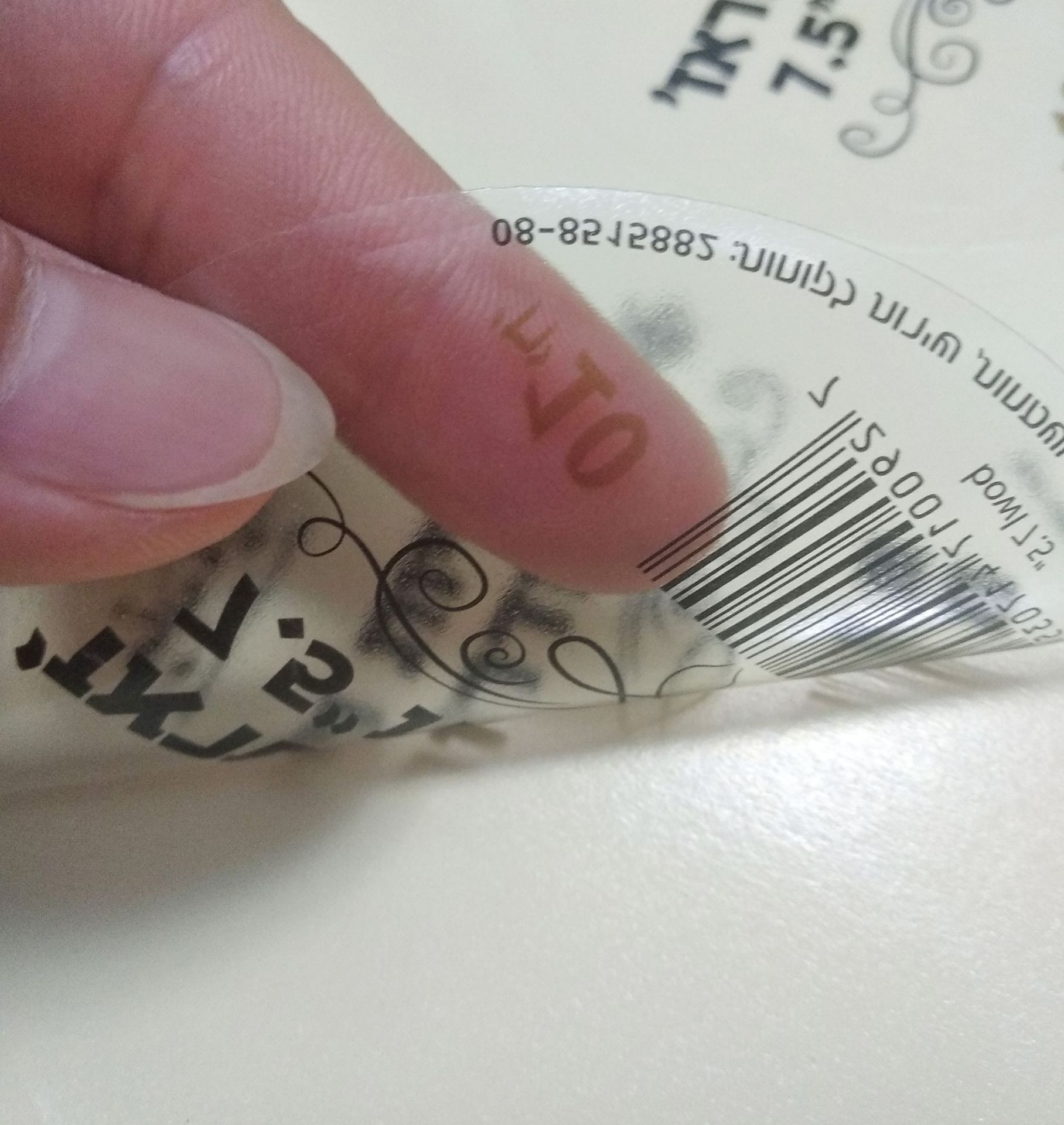 此款为印刷透明不干胶、产品粘性强、易剥离!