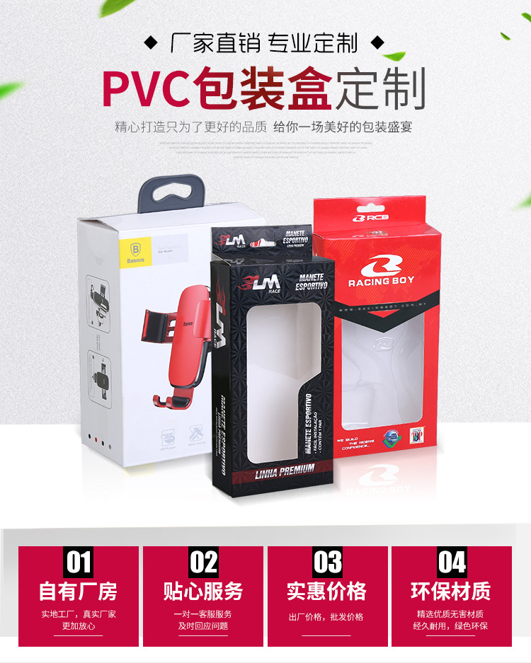 插卡式手机数据线包装盒 充电线吸塑三折边通用包装PVC透明塑料盒