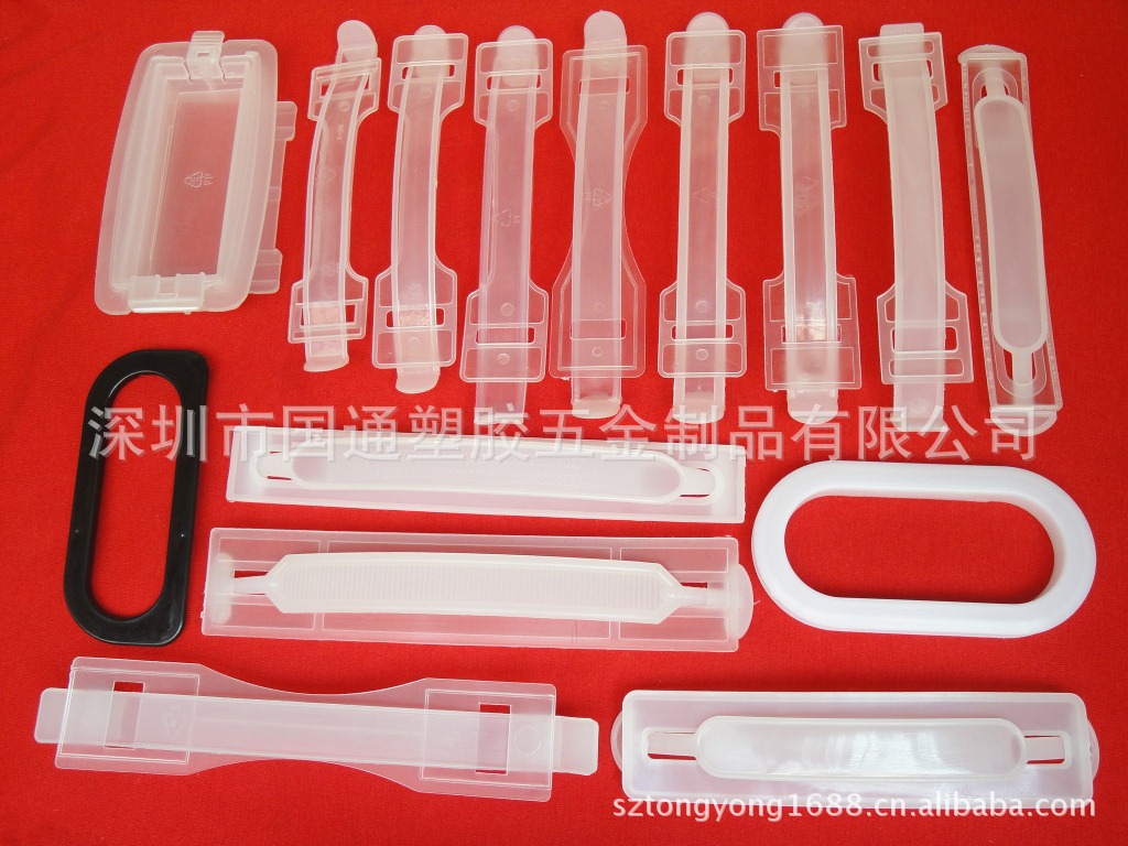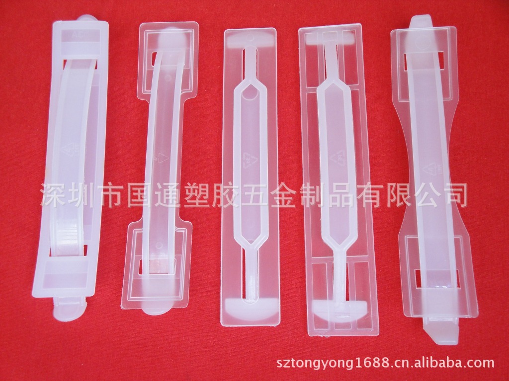 国通塑胶,生产各种塑料提手、塑料挂钩、超市挂钩、超市挂条、PP提条、塑胶提手、塑胶挂钩、饮料提手;以“展示用品,包装制品配件”主要产品。专注塑料、五金制品加工, 经验丰富、技术过硬、质量保证、价格合理、供货及时、顾客至上,本厂具有CAD设计能力,自制模具、制模快捷、便宜。 可根据客户要求定做各种国际通用颜色。欢迎来样板共同开发合作!