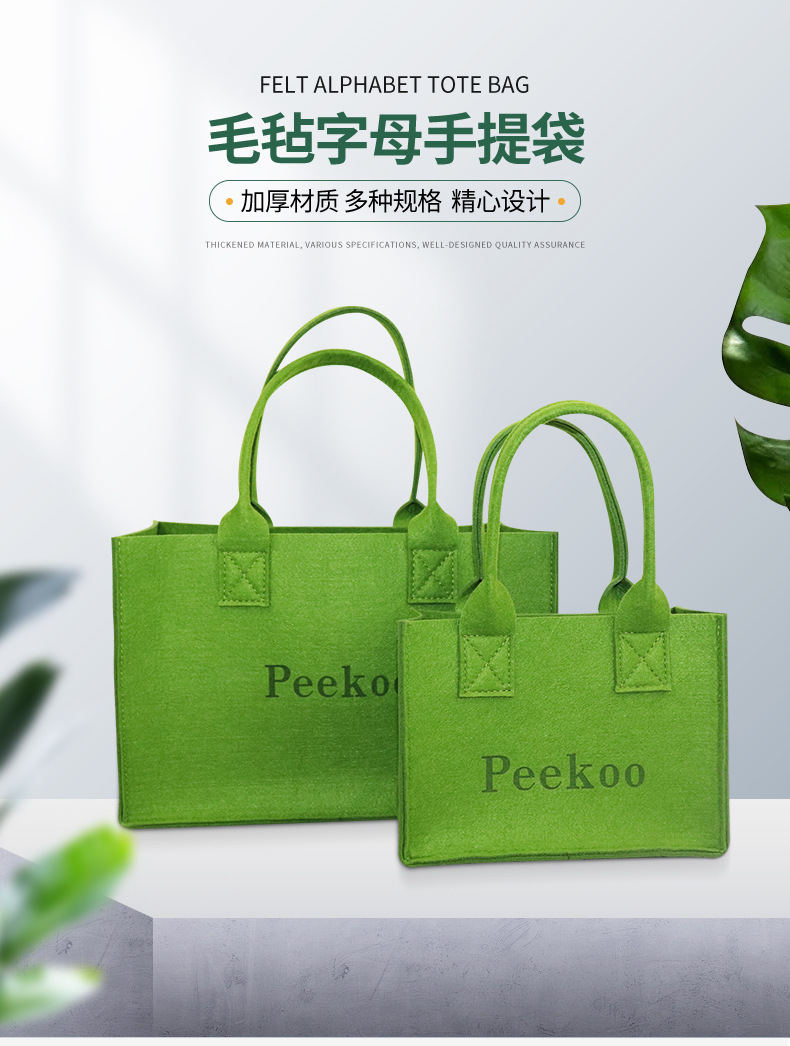 现货批发纯色毛毡手提袋 时尚潮流家用超时购物袋毛毡手提袋
