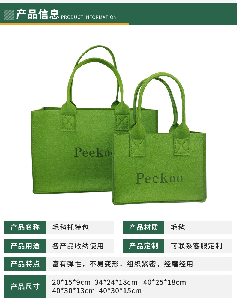 现货批发纯色毛毡手提袋 时尚潮流家用超时购物袋毛毡手提袋