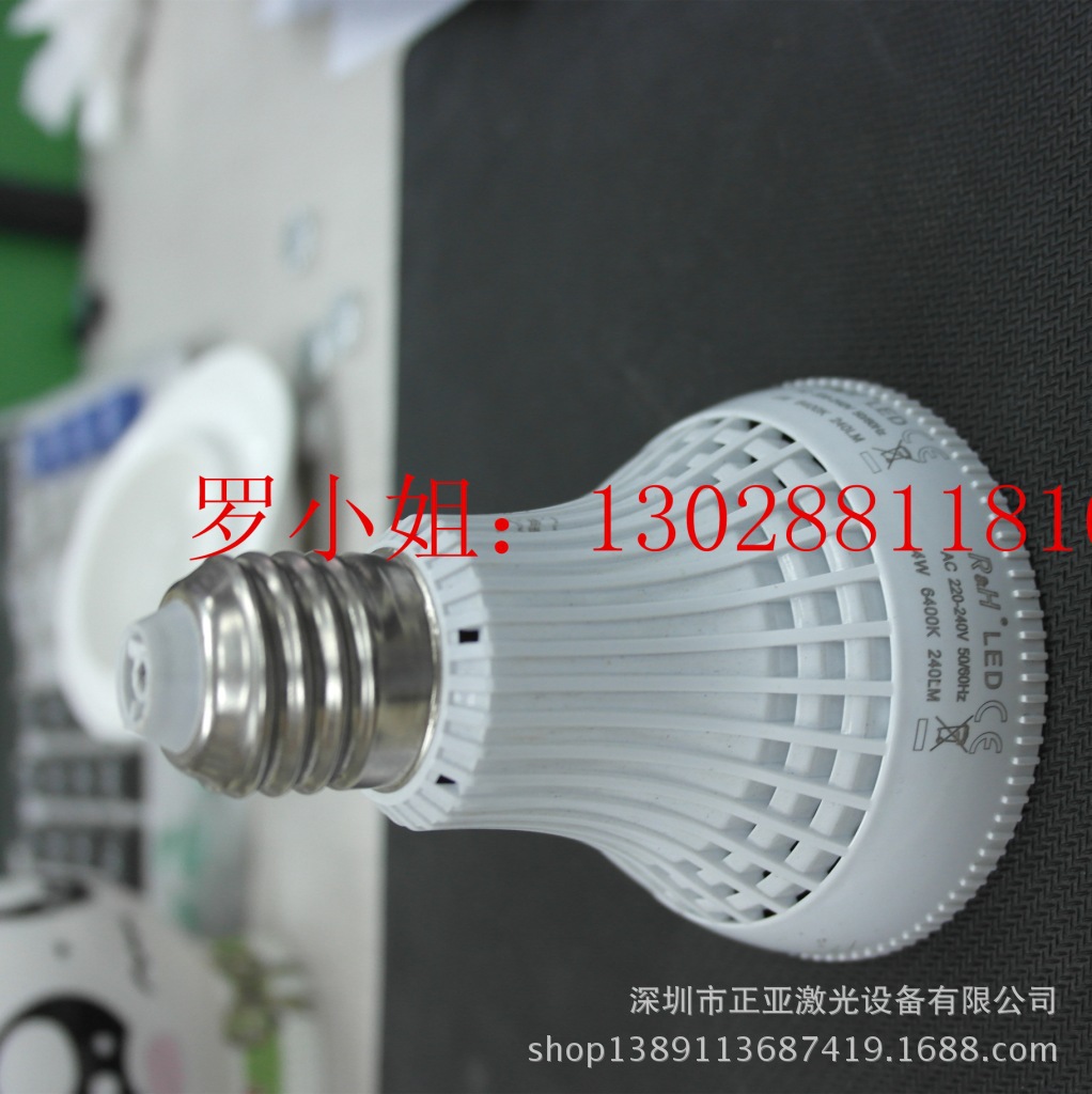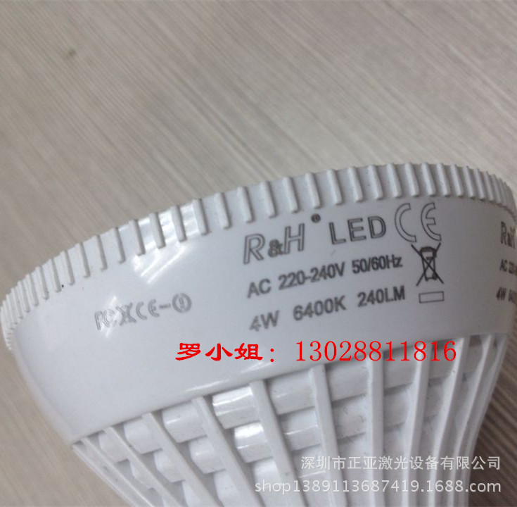 1、速度快,一台节能灯光纤激光打标机雕刻灯座只要五秒,全天24小时可不间断工作,一个员工可同时操作三台节能灯光纤激光打标机。