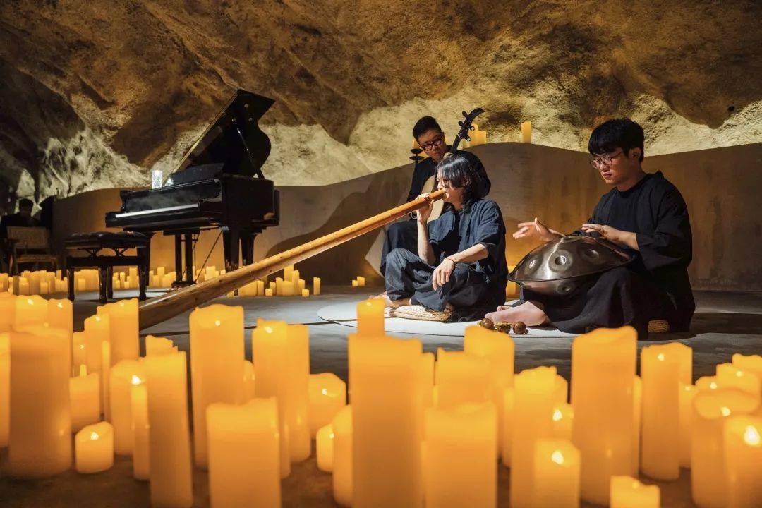 聆听音乐家们演奏,得天独厚的矿洞岩壁,让乐符能够自由跳跃生长,转化成耳边最治愈的空灵回响。这是属于音乐的独立世界,乘着激荡的乐声,从过去穿梭到未来。