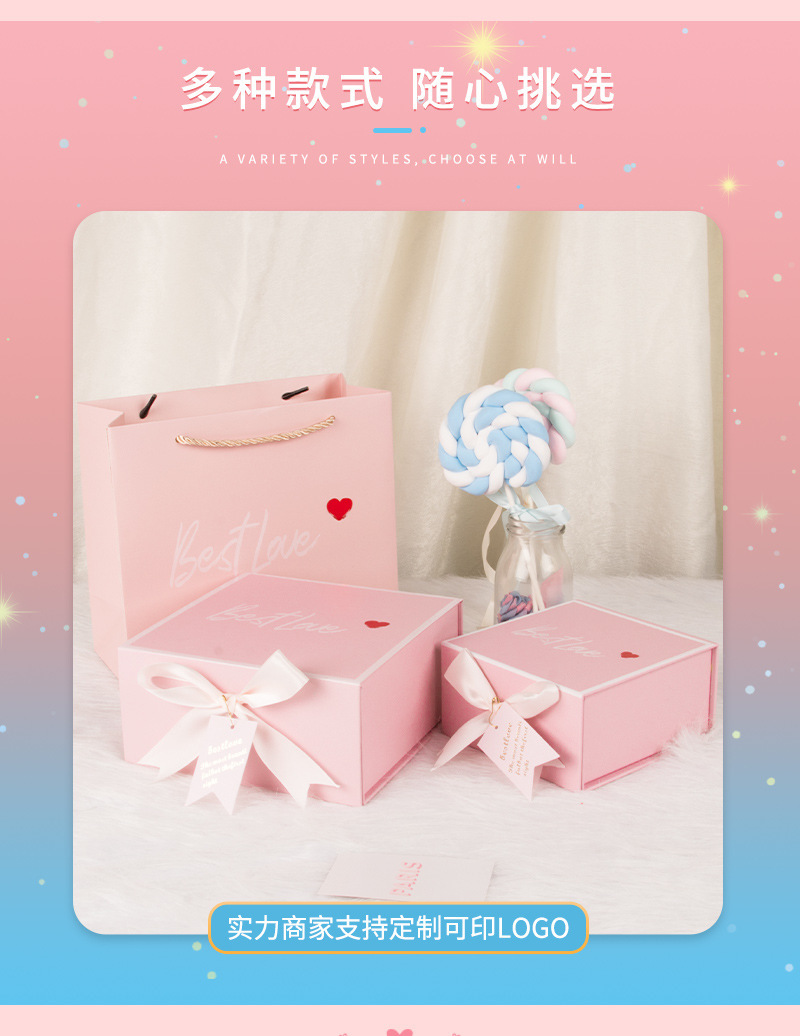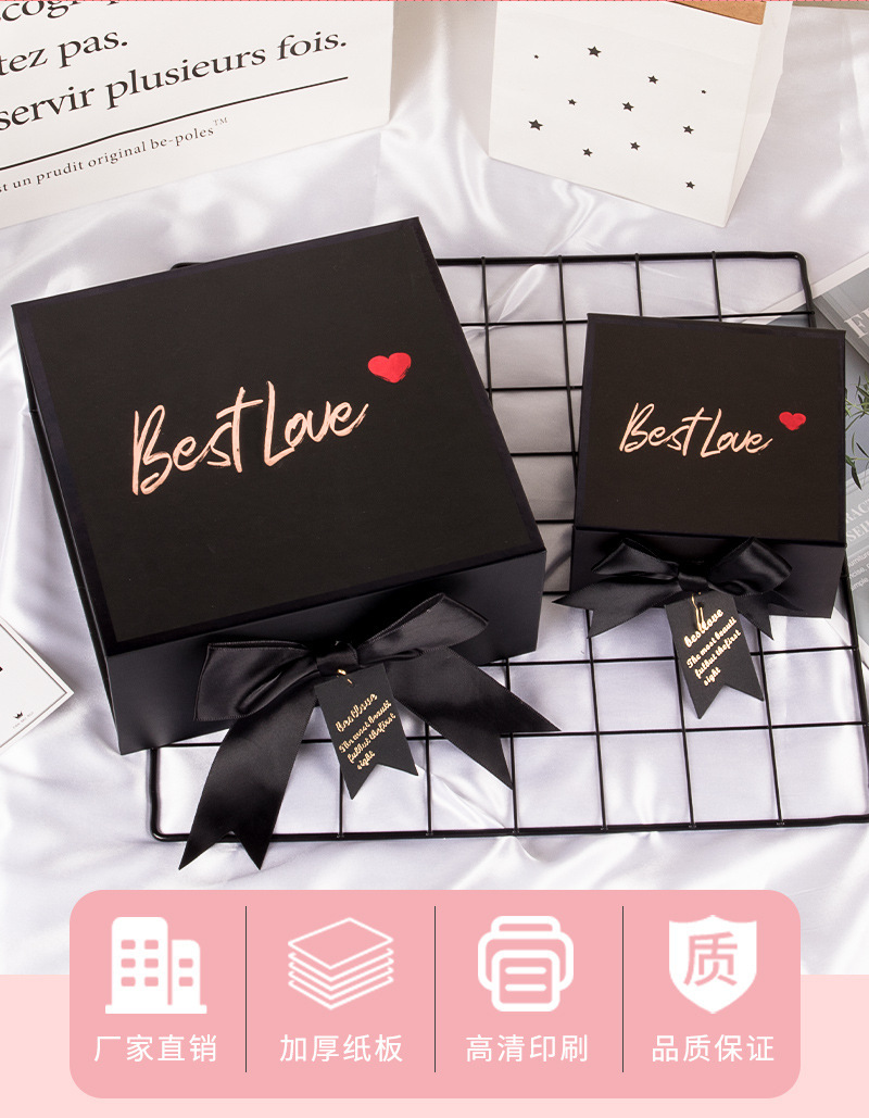 定制翻盖磁铁盒配置蝴蝶结丝带礼品首饰节假日礼物包装纸盒