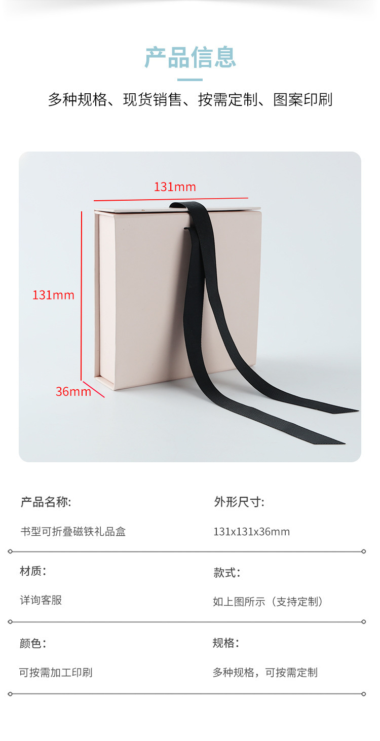 小额定制批发粉色丝带折叠书型礼品包装盒