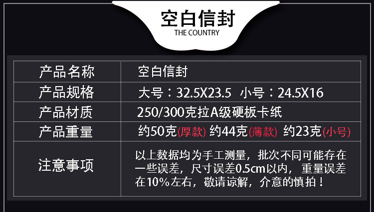 温馨提示:1.请买家务必在签收快递前,确认商品外包装,完好无损后再签收,有破损的先别签收,第一时间联系我们处理;2.信封运输途中或多或少会有一些磨损,哪怕我们用气泡膜缠绕也还是存在轻微磨损情况,还望亲们多多谅解,在同行中我们的包装已经算很好了!