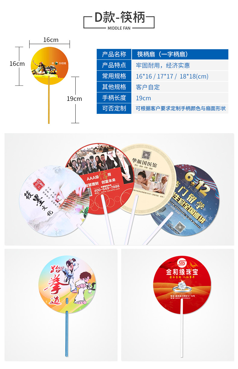 厂家团扇定制创意招生宣传O型筷子柄胶扇塑料PP卡通广告扇子定做