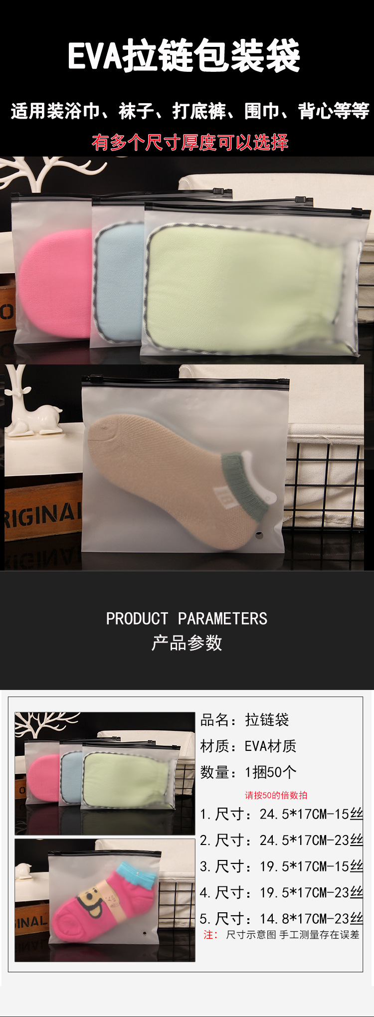 打底裤包装袋内裤袜子横拉链文胸洗澡巾搓澡巾儿童袜子磨砂袋现货