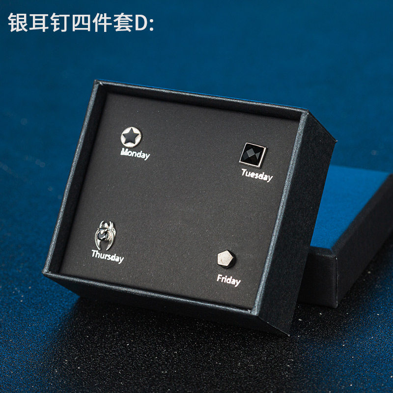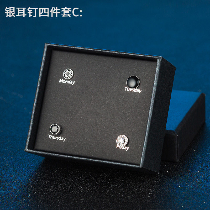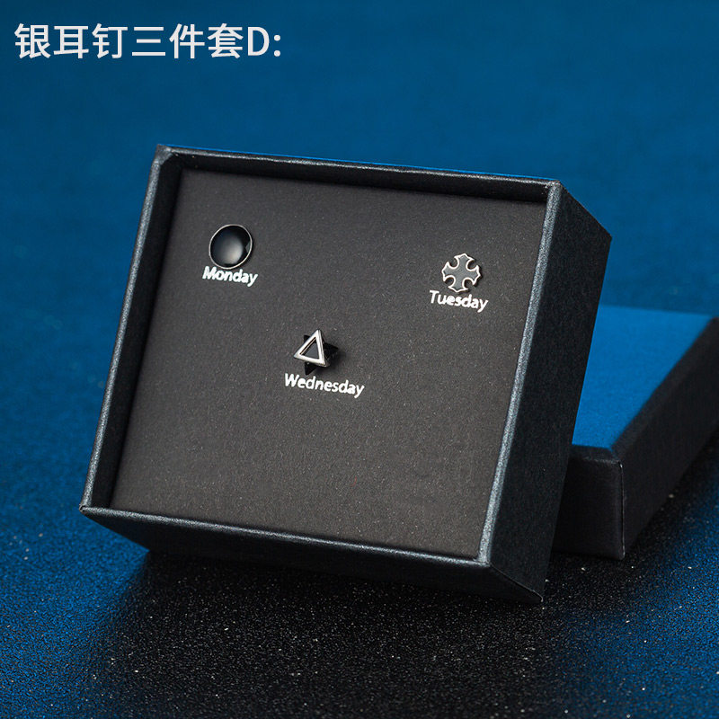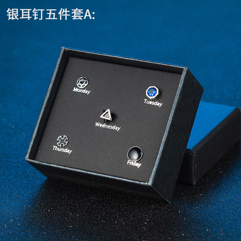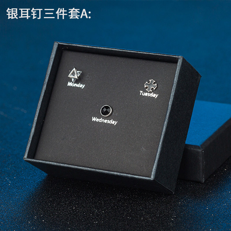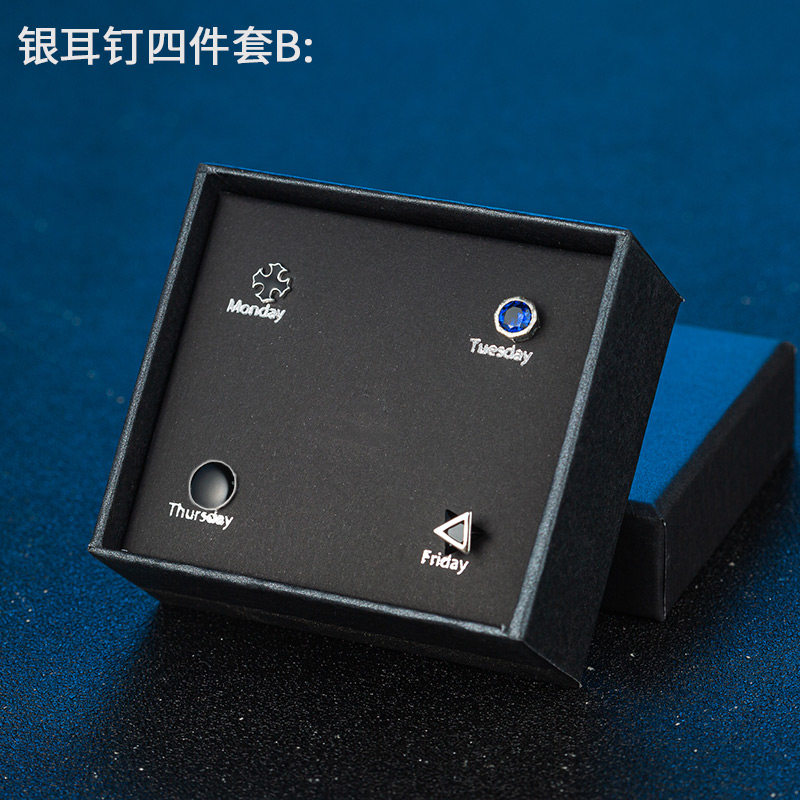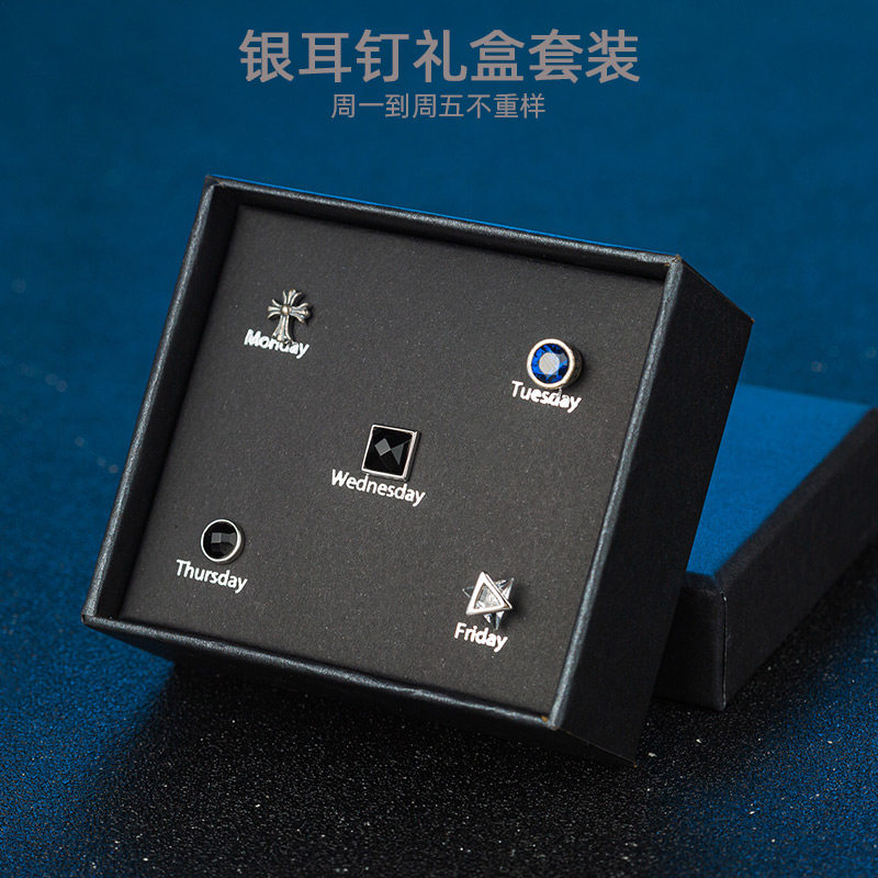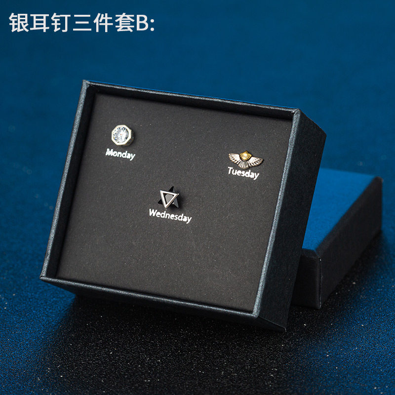 S925银耳钉男女ins潮流耳环镶钻个性学生礼盒套装感气质银饰