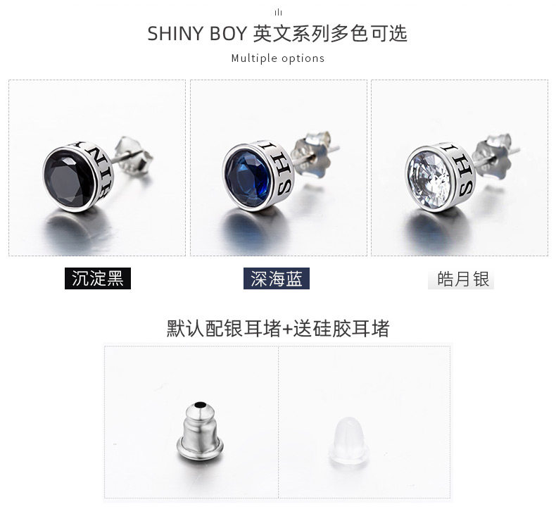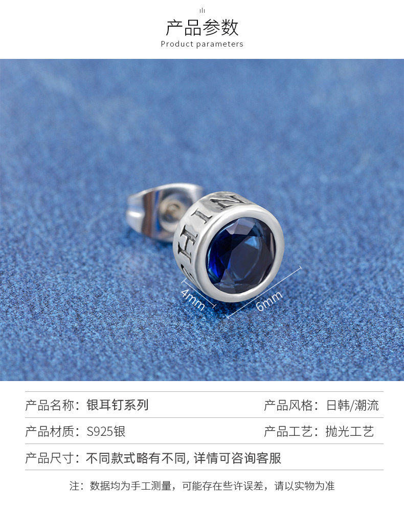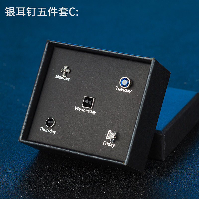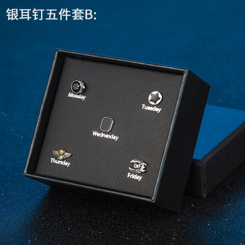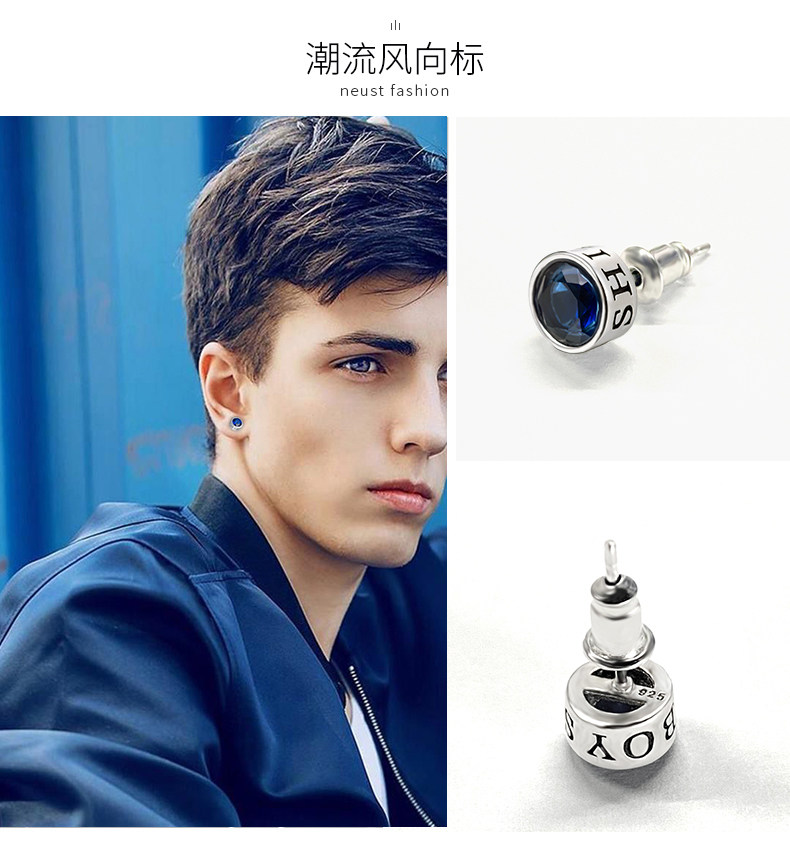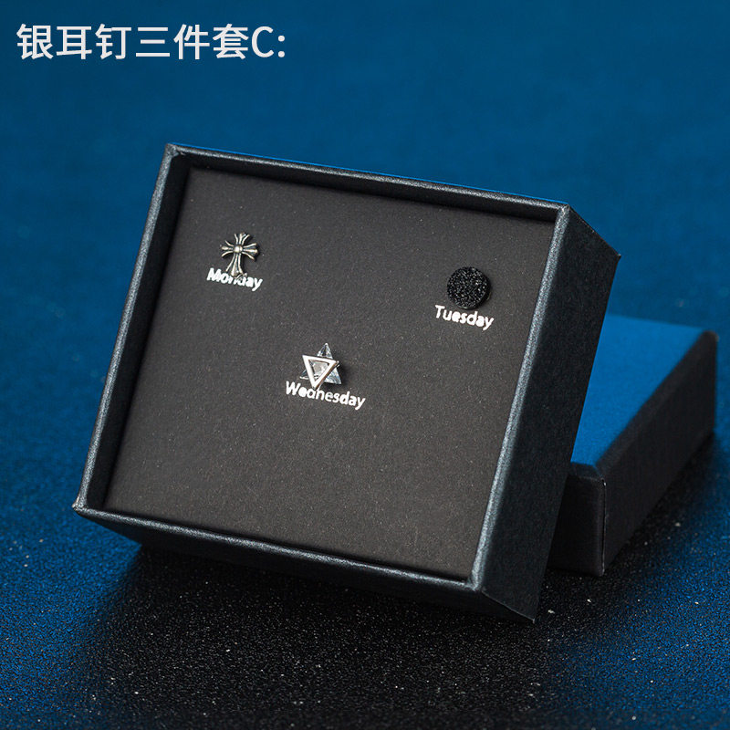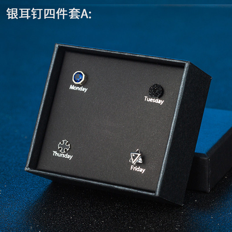 S925银耳钉男女ins潮流耳环镶钻个性学生礼盒套装感气质银饰