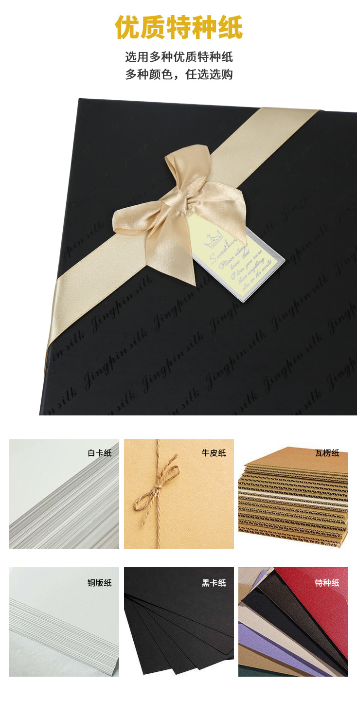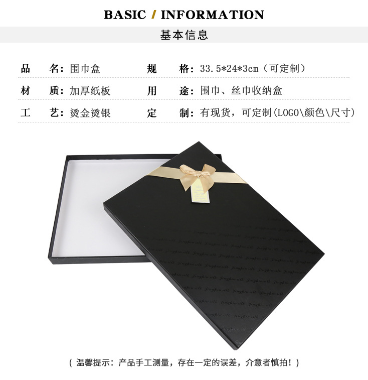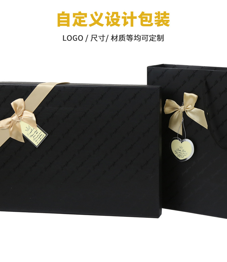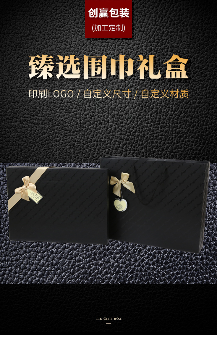 长方形黑色围巾丝巾包装盒礼品盒手提袋蝴蝶结天地盖创意纸盒定制