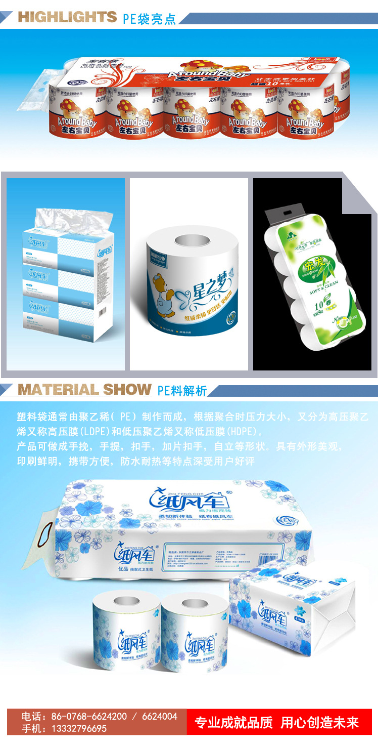 厂家订做 卫生纸包装袋 塑料包装袋 纸巾包装袋 软包纸巾手提袋