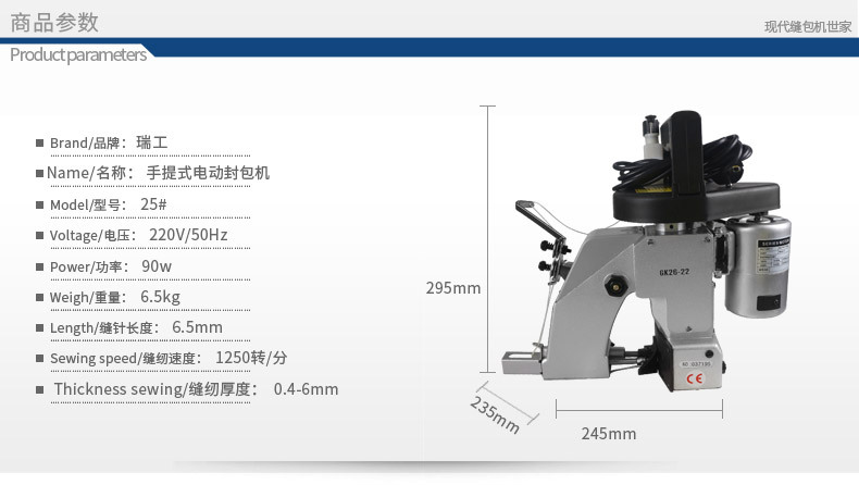 瑞工890B手提锂电充电式无线封包机缝包机打包机编织袋封口机户外