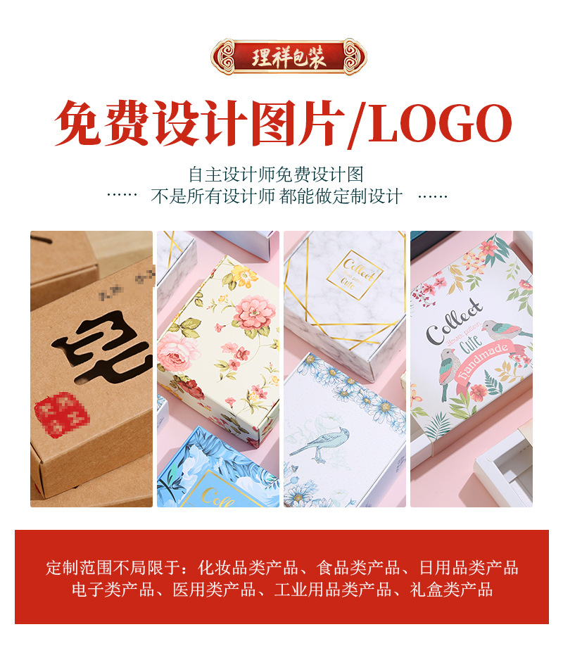 牛皮纸包装盒印logo礼品药品食品包装盒口红喜糖白卡纸包装盒印刷