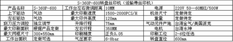 S-360高速转盘丝印机-机器参数: