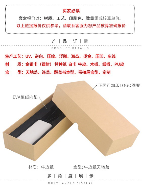 厂家定制手机充电宝等电器产品的牛皮纸天地盖牛皮纸包装纸盒