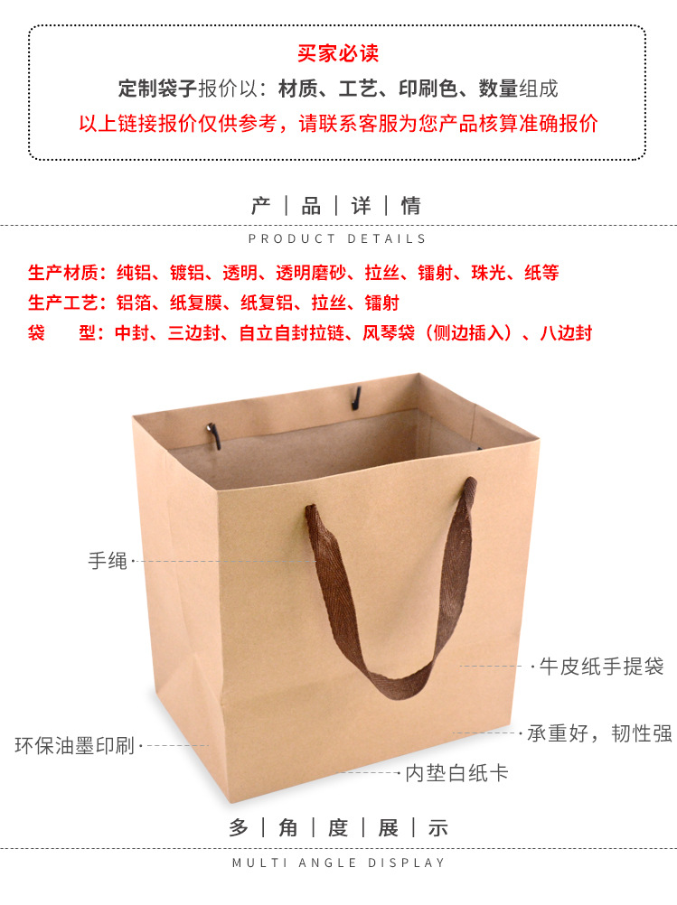 厂家制作纸袋牛皮纸手提袋餐饮外卖打包袋服装现货购物袋礼盒包装