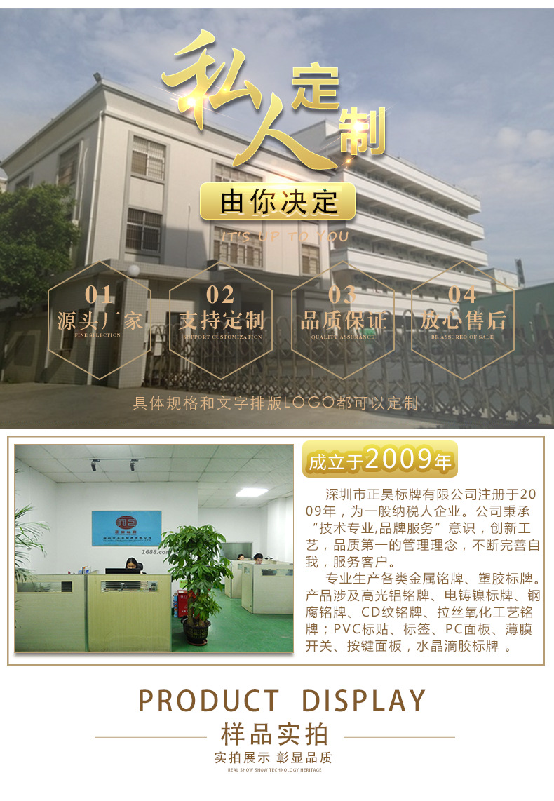 金属标牌、PVC标牌、面板、滴胶标牌、不干胶标签、五金制品、塑胶制品的生产与销售;国内贸易,货物及技术进出口。(法律、行政法规、国务院决定规定在登记前须经批准的..