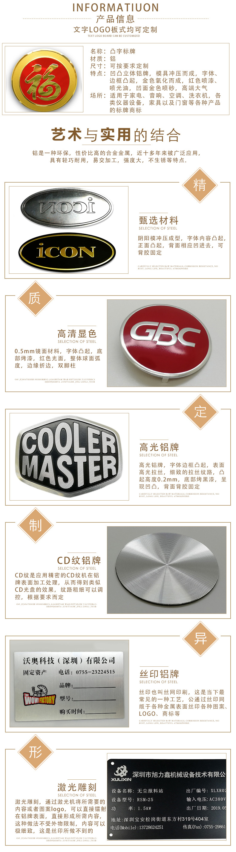 定做金属冲压凸字立体球面弧度脚柱镜面反光铝合金标牌碎纸机铭牌