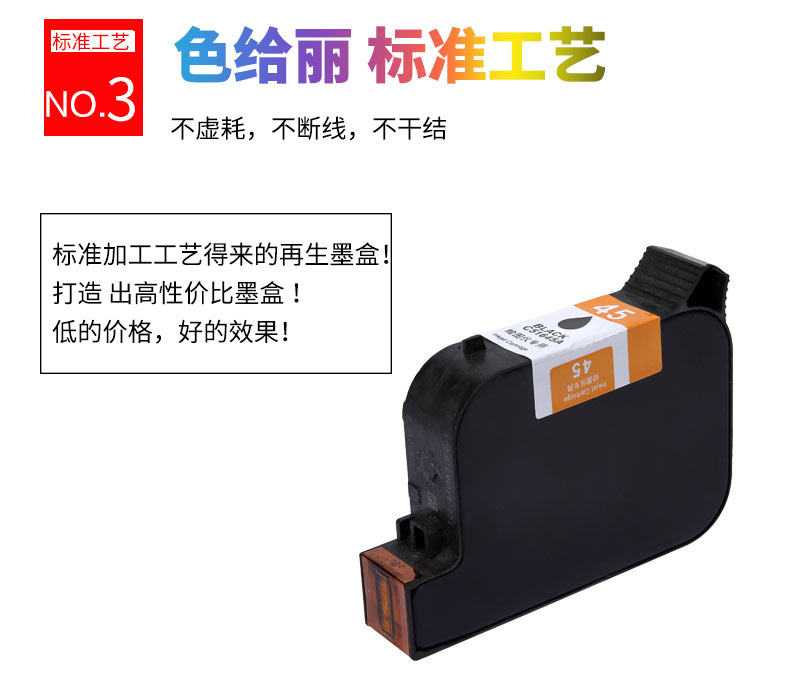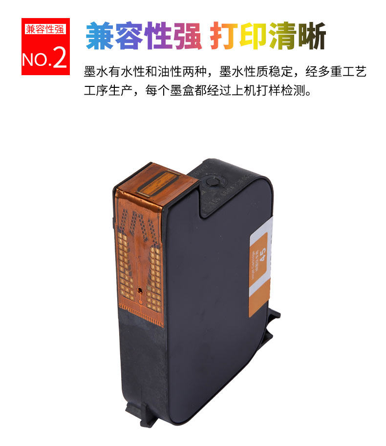 适用HP45 手持式/在线喷码机速干墨盒 12.7MM/25.4MM大喷嘴快干溶