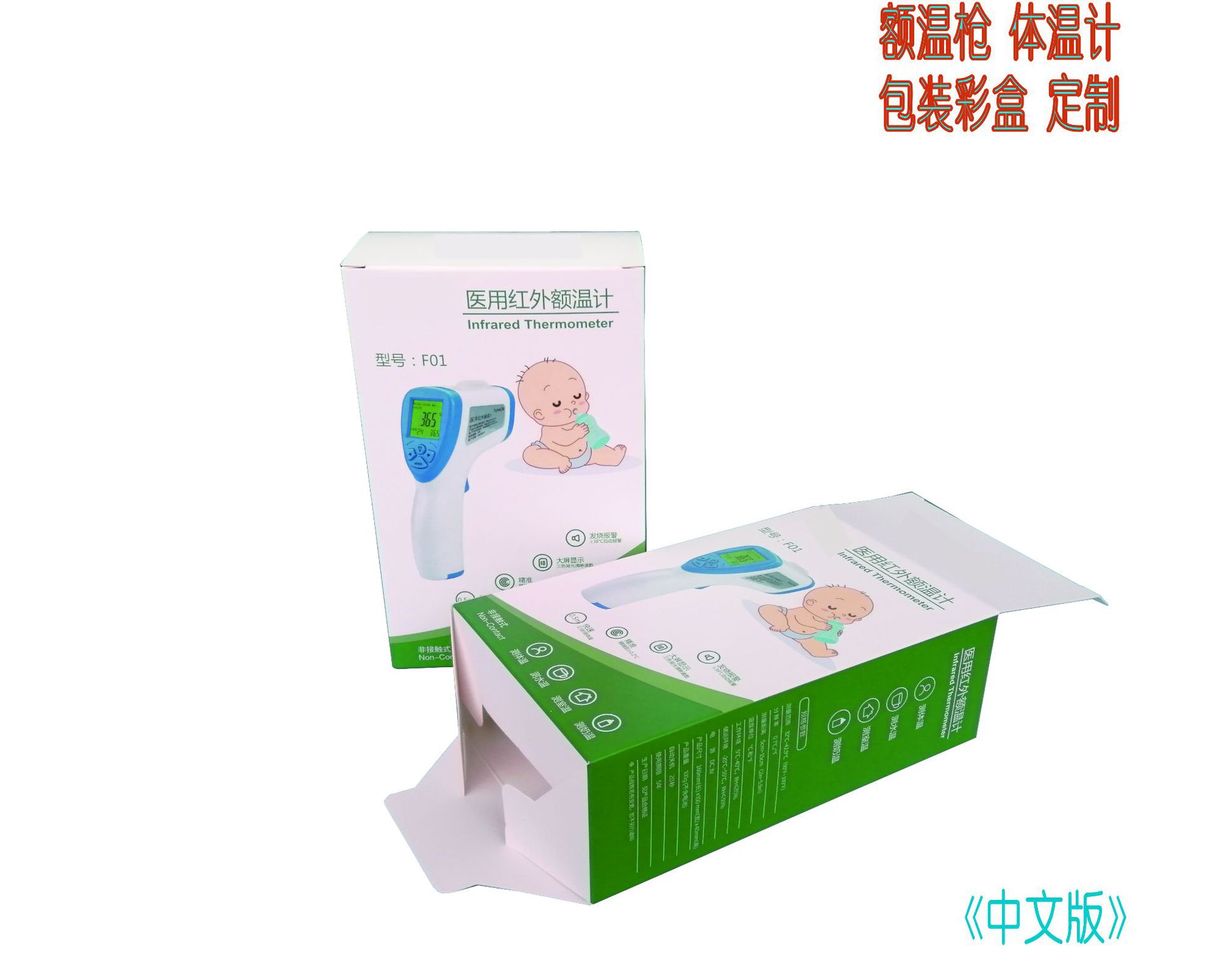 彩色印刷额温枪包装盒定做体温枪白卡纸盒合格证说明书可定制生产