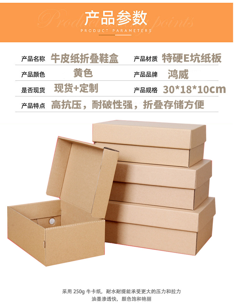 工厂现货运动鞋包装牛皮纸鞋盒折叠式鞋盒纸盒翻盖收纳礼品盒定制