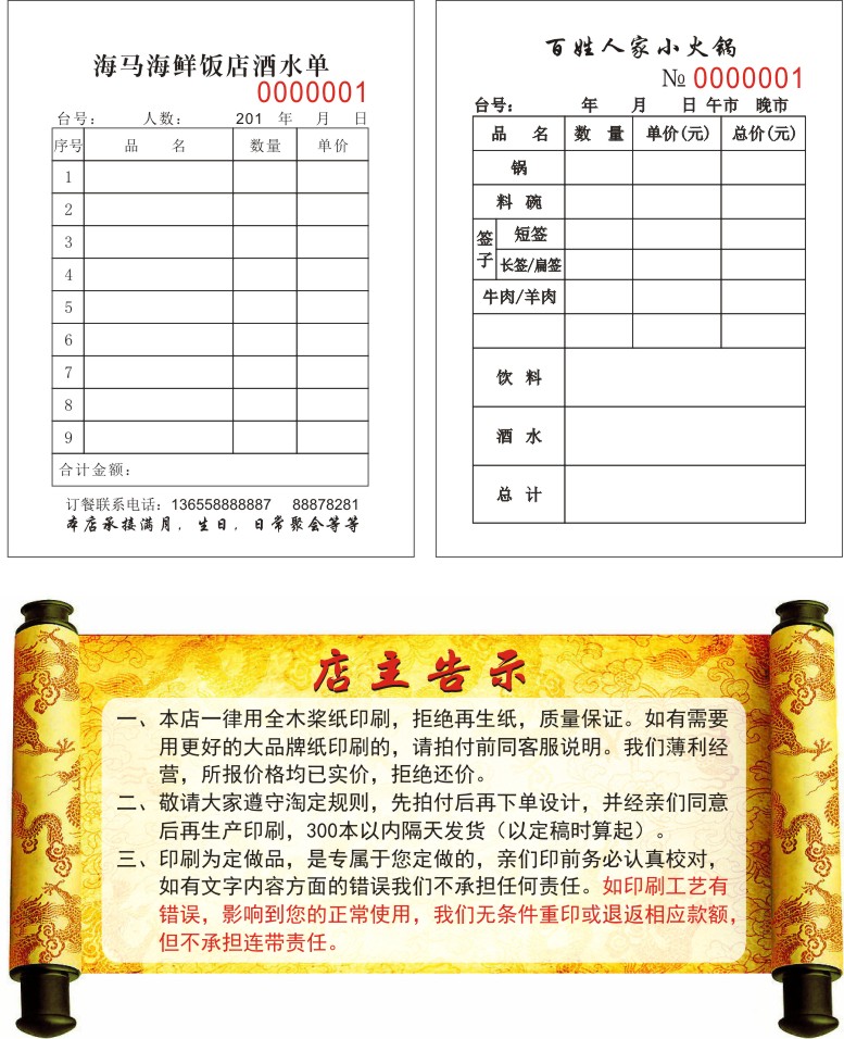 2、旺旺报价都是边联合并的价格,分联印刷价格另议;简单排版免费,复杂的视情况另收10-20元;