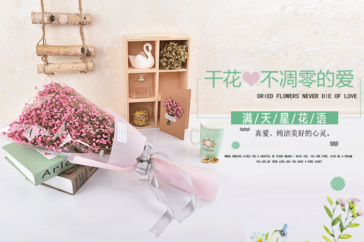 满天星干花花束礼盒天然大束永生花生日真花送员工三八女神节礼物