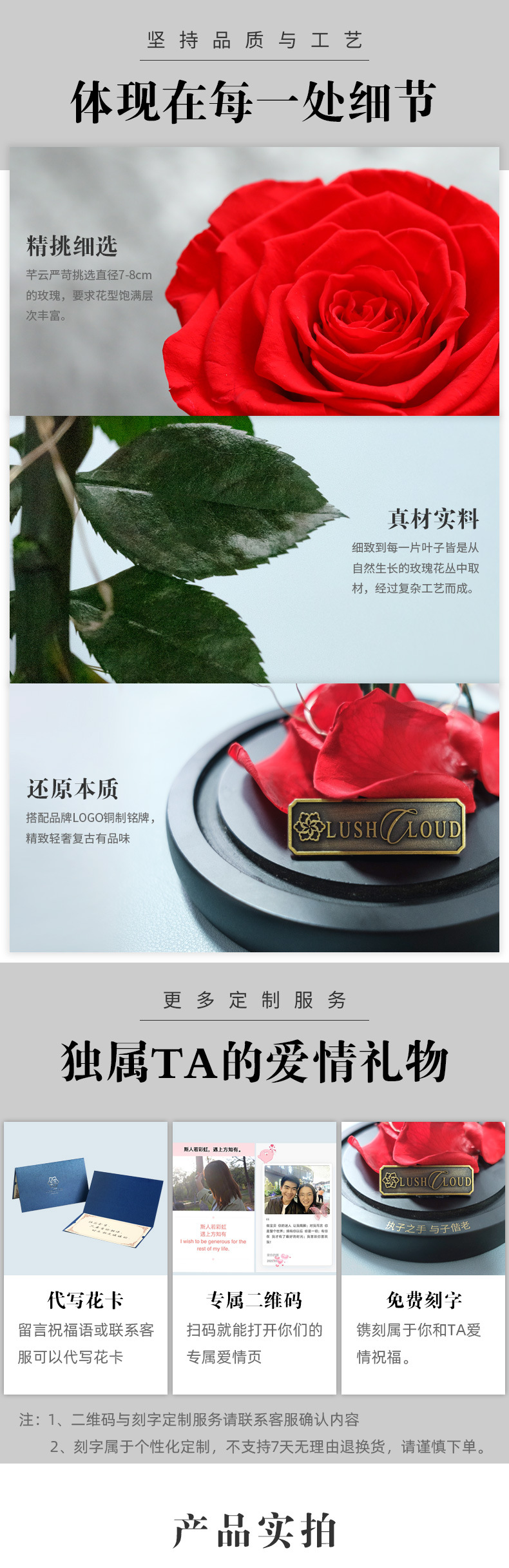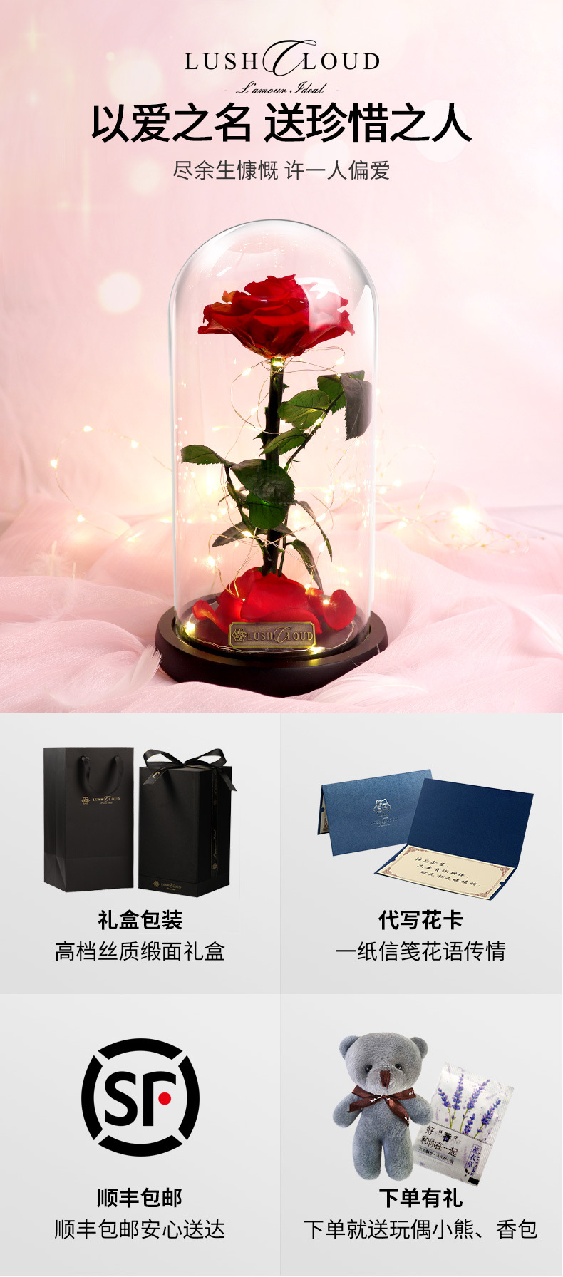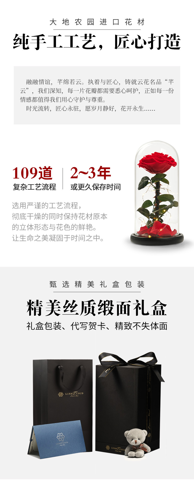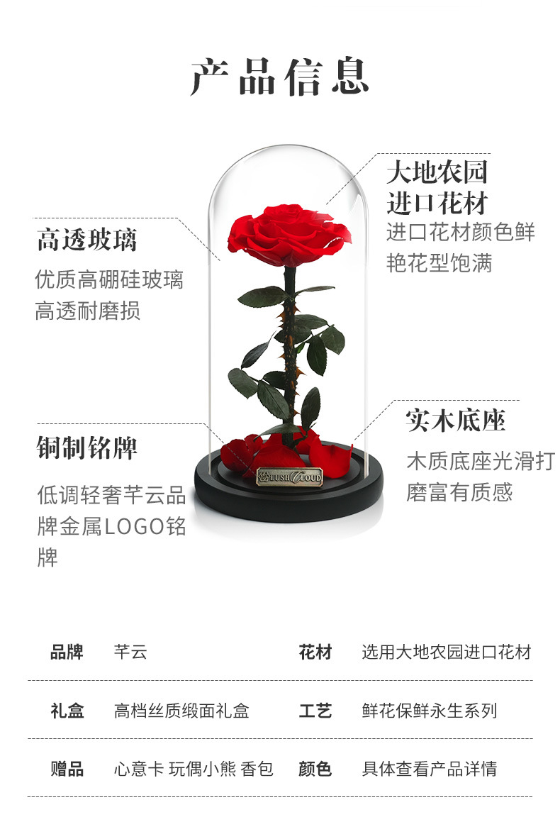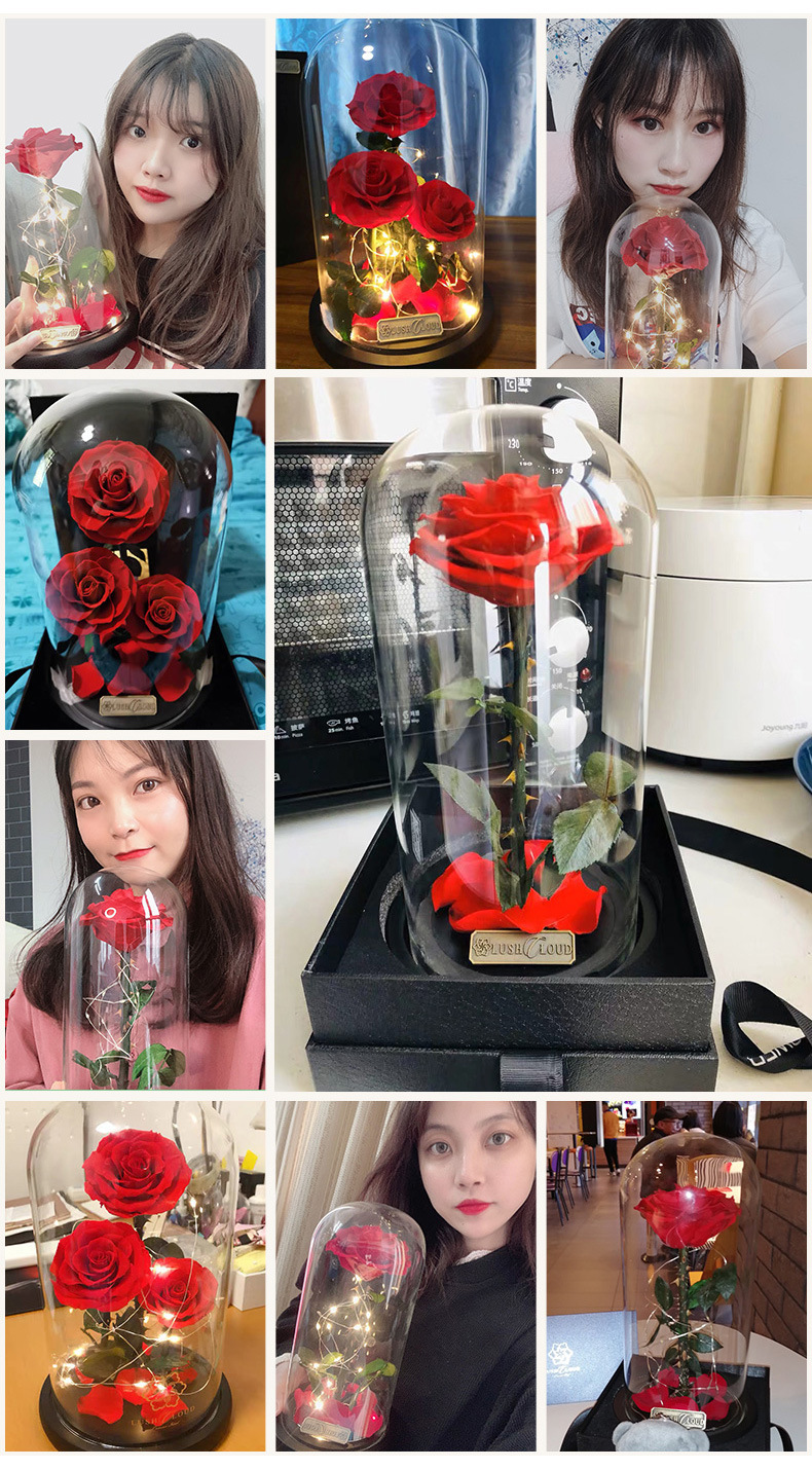 进口永生花玫瑰花礼盒玻璃罩真花干花束三八情人节礼物生日送女友