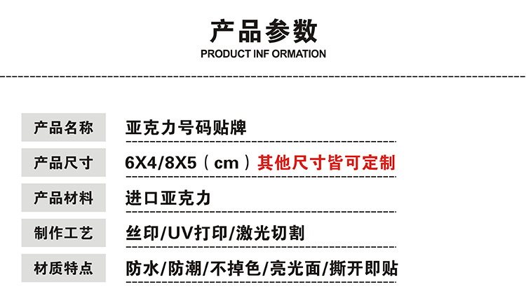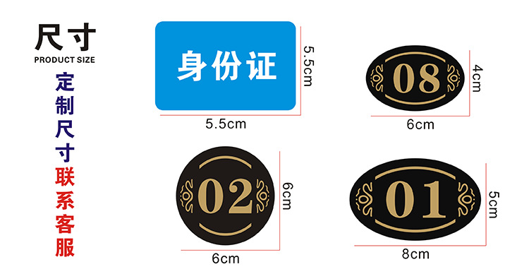 亚克力网咖桌号贴牌桌台餐桌座位数字贴储物更衣柜定制标识号码牌