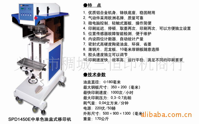 SPD1450E 三恒牌中单色油盅式(专用)移印机