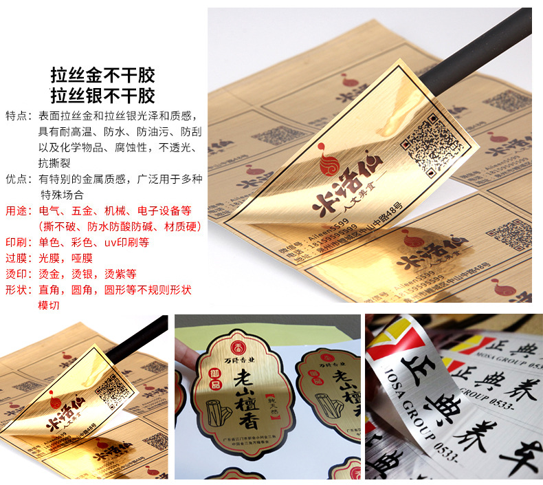 拉丝不干胶定做二维码贴纸透明PVC牛皮纸商标小广告logo标签印刷
