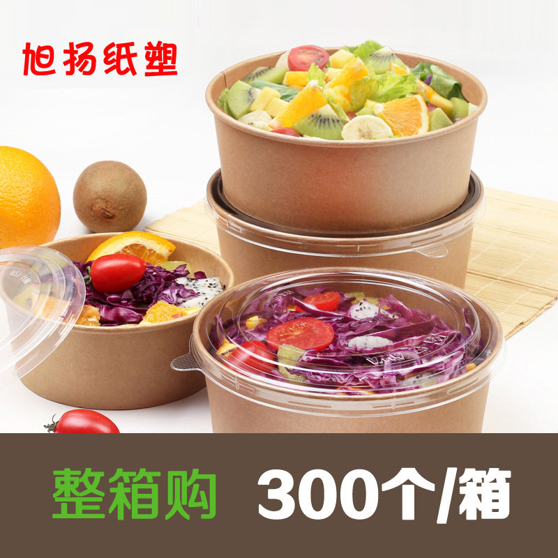 一次性餐盒外卖牛皮纸碗圆形沙拉盒甜品碗牛皮纸碗一次性纸饭盒