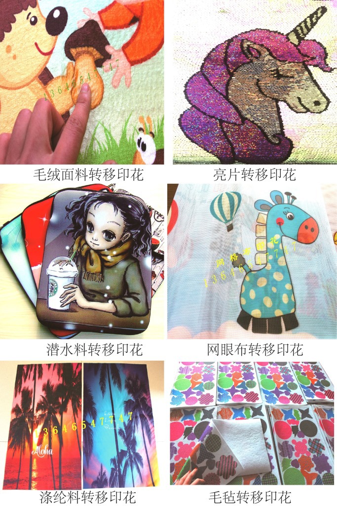 热升华印花可以转印到白色或是浅色的涤面料上,棉成分不可过高;是加热高温(180-220度)渗透到面料上,转印后效果无手感。