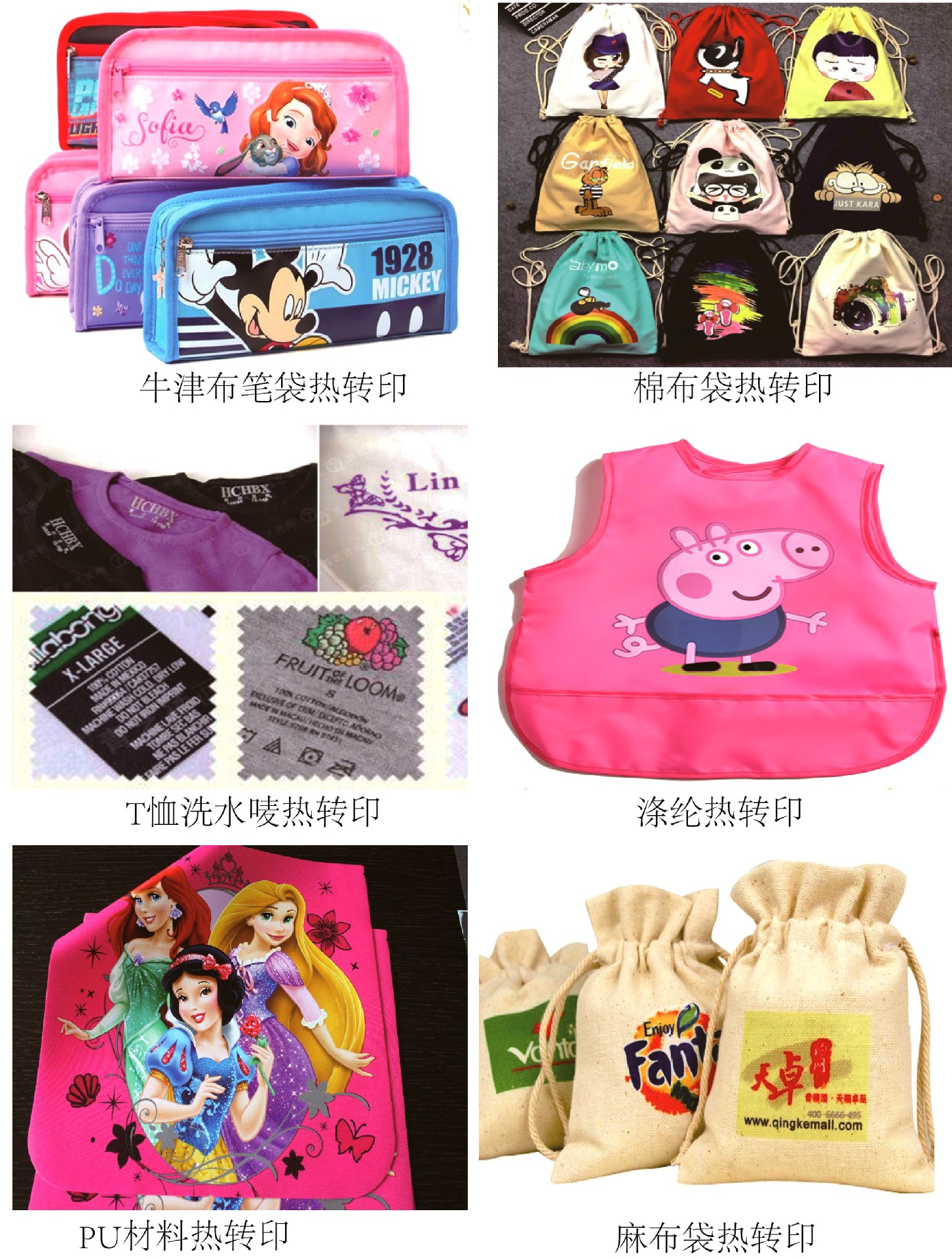 我司生产的热转印烫画图案通过SGS认证,环保牢固。层次丰富、色彩鲜艳亮丽,手感柔软、图案逼真、着色准确、颜色表现丰富、色牢度强(经专业测试4.5级以上,最高级别为5级)