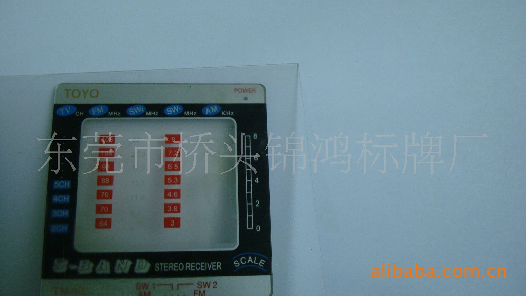 本产品采用PC、PVC精工丝印冲压而成,品种多样,适用于收音机、录音机上。