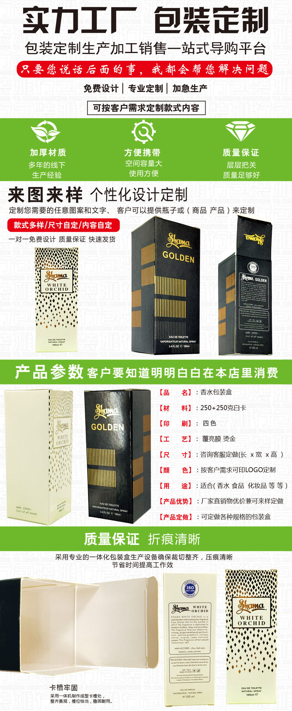 定制香水盒 金箔卡纸 银箔卡纸彩盒 化妆品包装设计印刷 日化用品