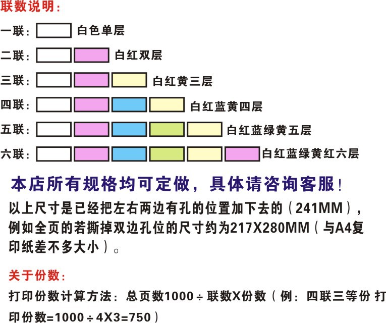 杰伦241-4 电脑打印纸 打印纸 针式打印机针式纸四层4联凭证纸