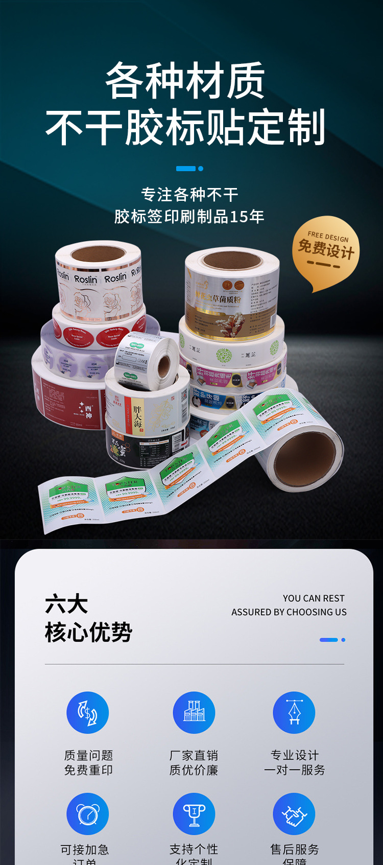 卷筒不干胶标签定制 各类材质工艺不干胶瓶贴封口贴商标LOGO定制