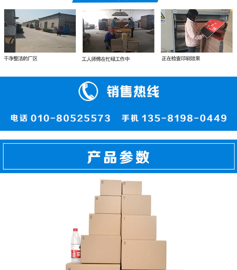 支持京津冀距离通州100公里以内的客户定制纸箱,外地客户或偏远的建议您就近定制,现货京津冀快递满49包邮,只发中通快递,每天8点之后的订单隔天早上8点发货,北京预计早上发货下午到。自提客户享受八折优惠。 瓦楞纸箱支持双色印刷,红黑两色免费印刷,其他调色需要收费,纸箱宽小于26CM的要做模切板,长小于15厘米的要做模切板,飞机盒要做模切板,印刷要做印刷版。以上模板只收一次,之后做同尺寸同印刷的不需要再做模板了。