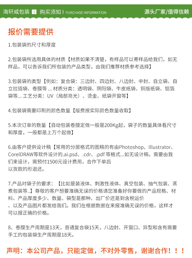 定做各种食品包装复合袋、铝箔袋、吸嘴袋、八边封袋、拉链立袋、茶叶袋、大米袋、面粉袋等等。
