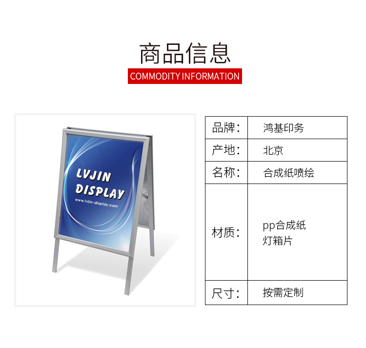 详细信息IP属地 上海 尊敬的顾客: 您好!印刷或者喷绘产品不同于普通商品,由于产品所用的原材料不同,印刷或者喷绘工艺不同,数量不同导致加工产品的成本相差很大。鸿基印务温馨提醒来我们店铺顾客朋友们:在购买产品之前,一定要通过阿里巴巴平台上的沟通工具旺旺或者千牛与店铺相关人员进行沟通,也可以拨打010-67878898进行咨询,沟通没有问题后,再下单。这样就会确保减少您不必要的麻烦。谢谢您的配合!