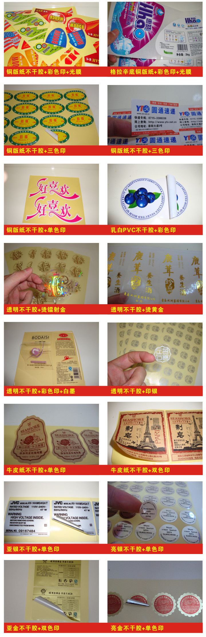 镭射不干胶、荧光纸不干胶、铜版纸不干胶、特光纸不干胶、书写纸不干胶、光金铝箔纸不干胶、哑金铝箔纸不干胶 光银铝箔纸不干胶、静电膜不干胶、特种不干胶等