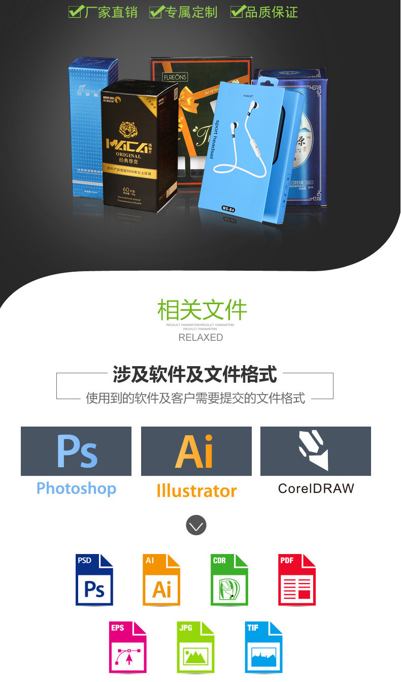 产品规格及外观工艺:外观十分多样化。可完全根据要求定制任意规格及形状。可根据客户要求设计LOGO及印刷图案.表面工艺:有光膜、哑膜、过油、磨光、磨砂、吸塑油、烫金、压纹、UV、击凸、七彩UV等。