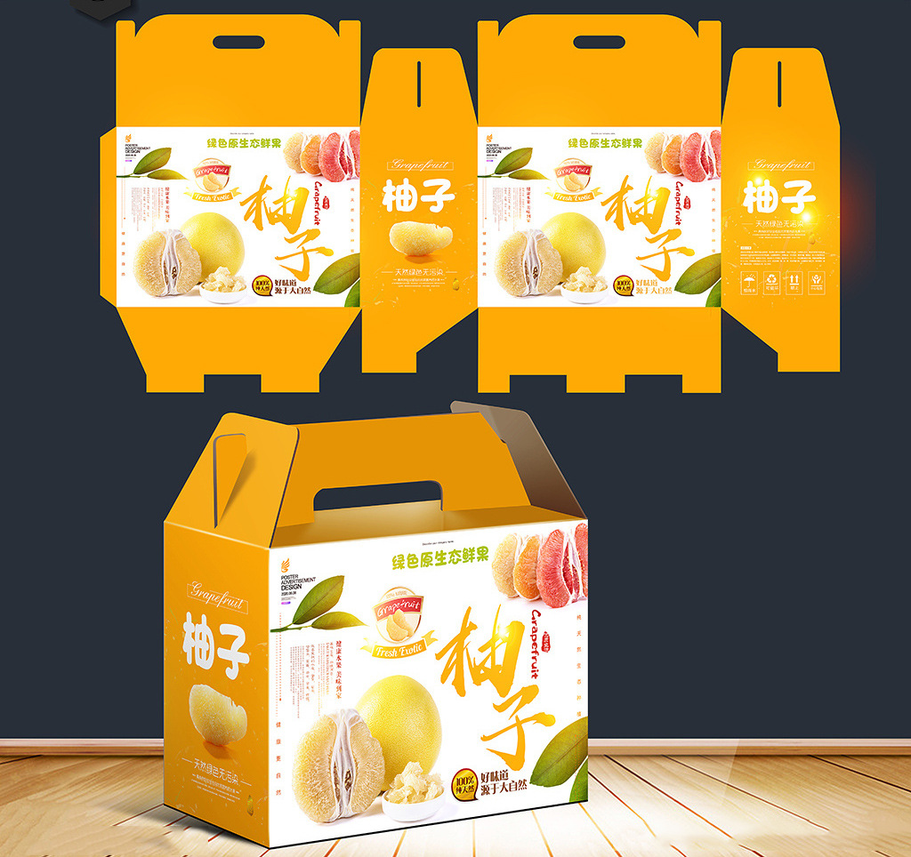 定做柚子包装盒文旦礼盒红心柚子手提盒水果包装箱免费设计