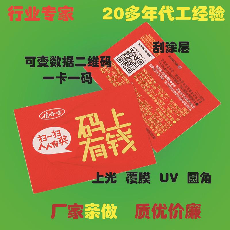 刮奖卡定制 可变数据二维码刮涂层卡片单独包装 刮刮卡定制