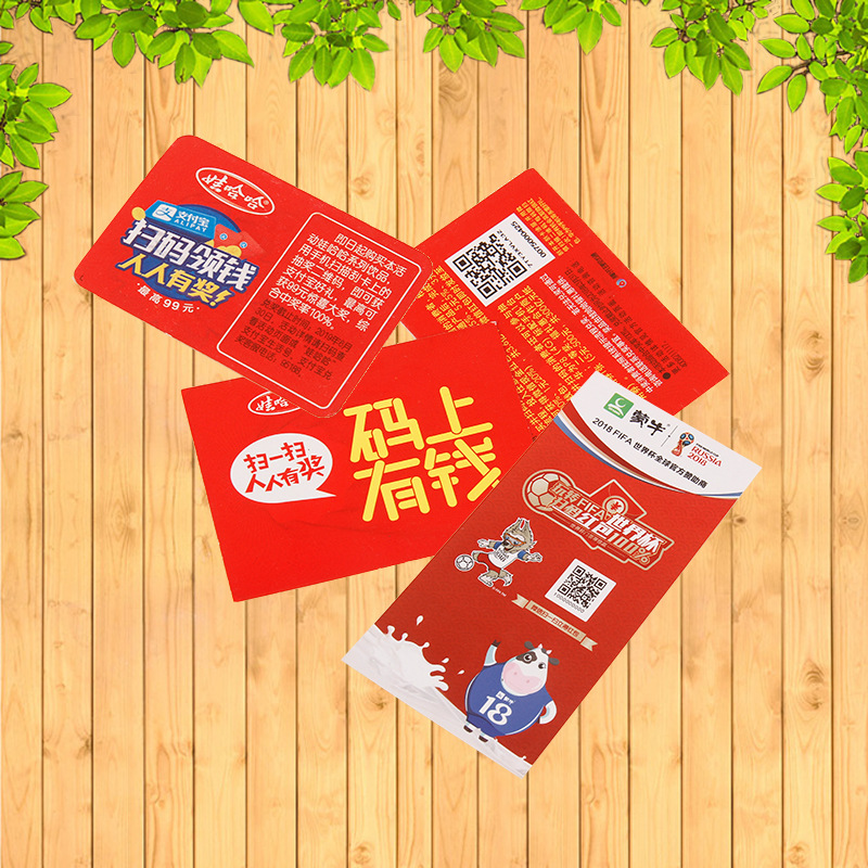 刮刮卡一般为两面印刷,四色也可以加专色和防伪油墨,材质一般选250-300克的铜版纸