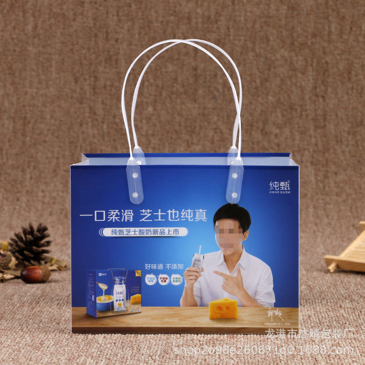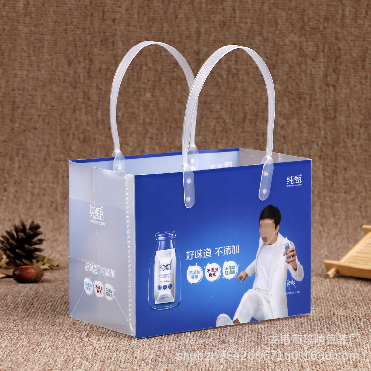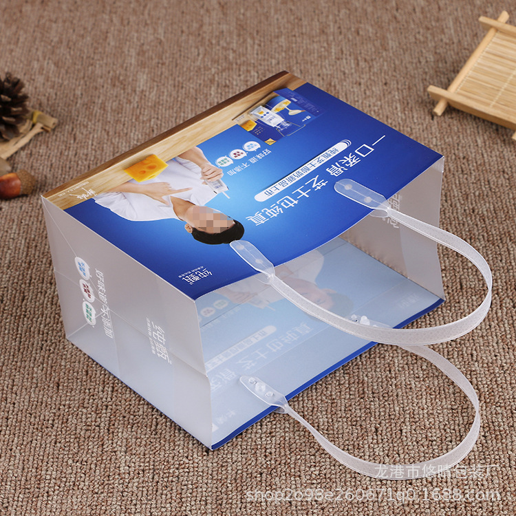 厂家制作pp塑料手提袋透明磨砂包装袋牛奶饮料购物礼品袋可印logo